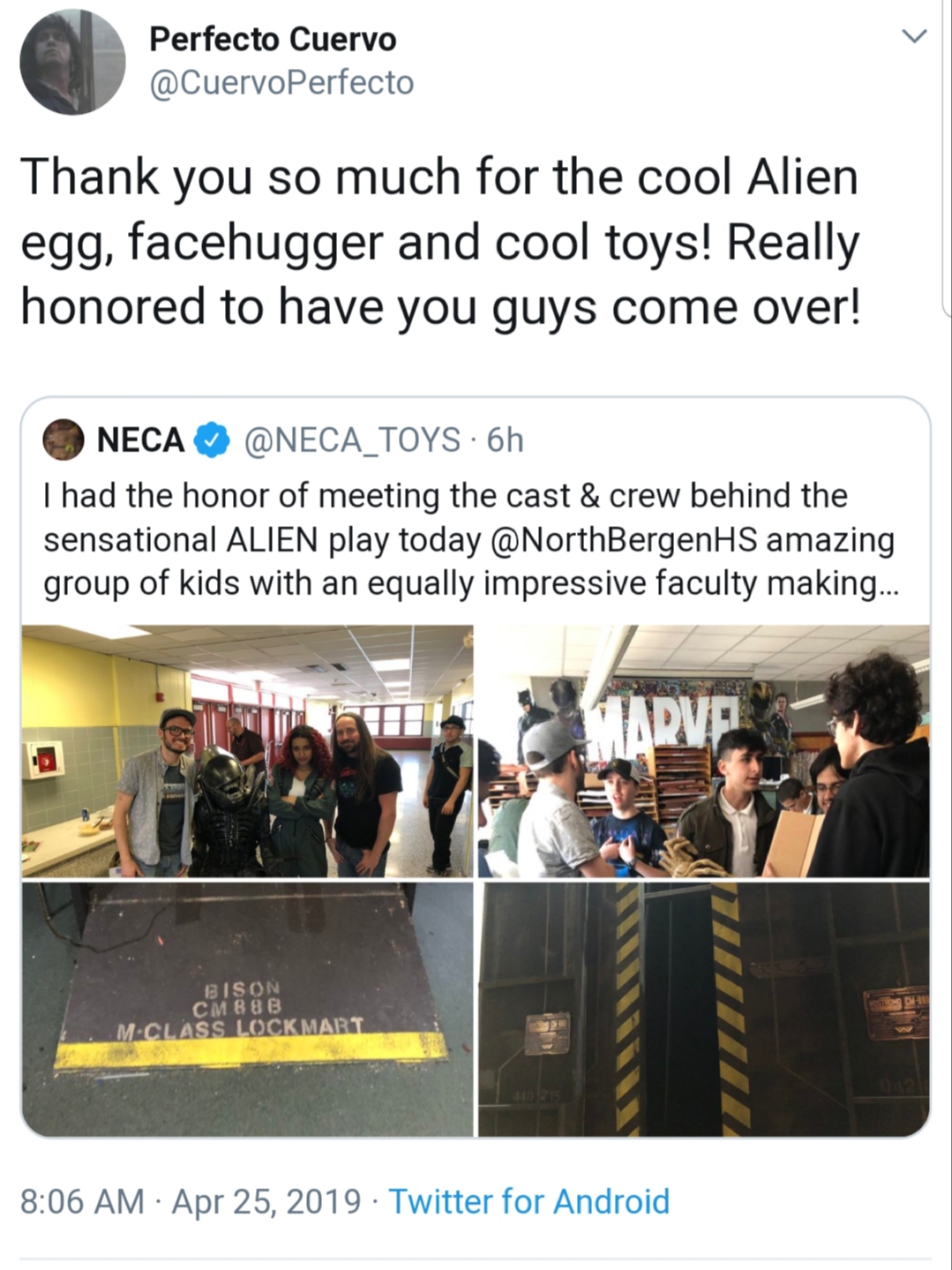 The Alien director Sir Ridley Scott praises North Bergen High School Alien: The Play and offers financial help to fund an encore performance, that will hopefully will properly recorded and posted online for all Alien fans to see.
