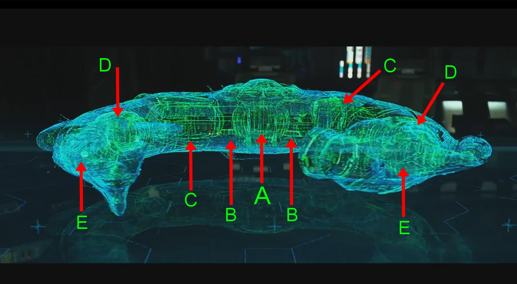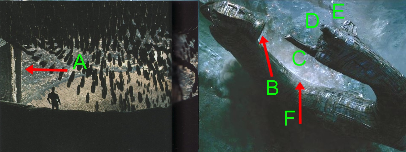 I conclude that the Juggernaught must Dock with the Scorpion Ship/Dock at about Point D on the image posted above.