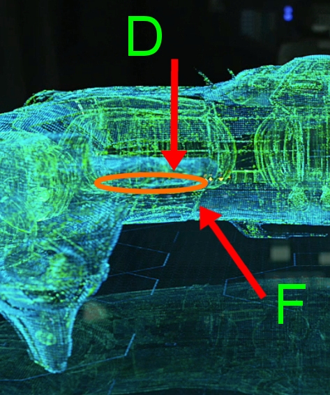 The other option is if we consider the last image posted in the previous reply where i have circled in Orange the Cargo Bay opening and David with a D and the Floor giving way with F