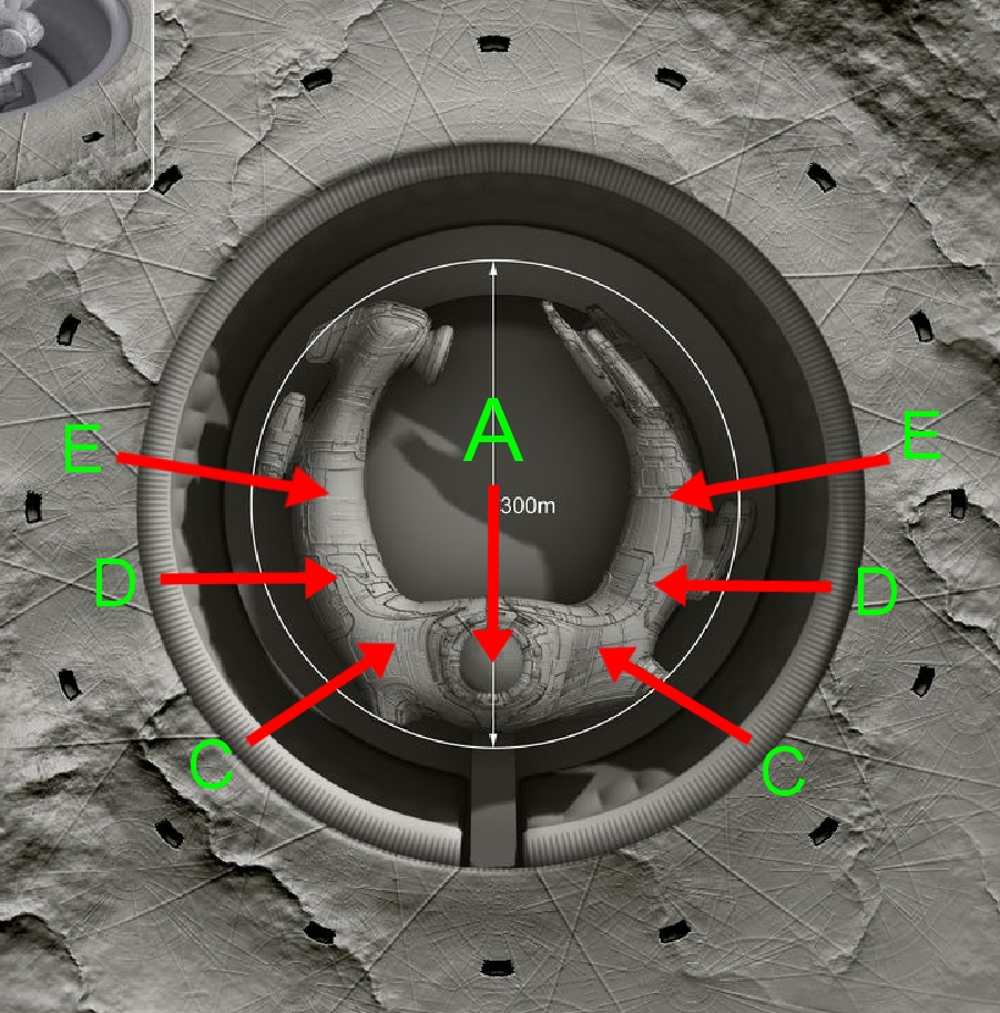 If we apply this logic to any of the Cargo Hold Potentials on the Left Side Facing out on the Juggernaught labeled C, D or maybe E and then Assume what if the Juggernaught is docked to Area C or B or about (Circled Area below D) of the Scorpion Ship/Dock then maybe this explains that view?
