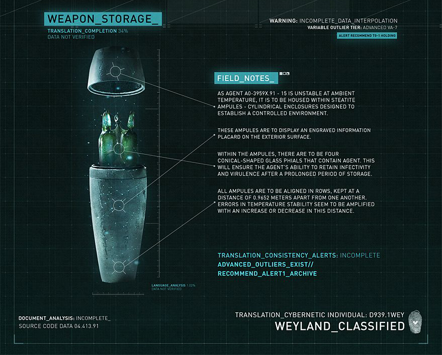 I haven't completed my employee training on the Weyland Industries website so this classified material was revealed by noble sources online.