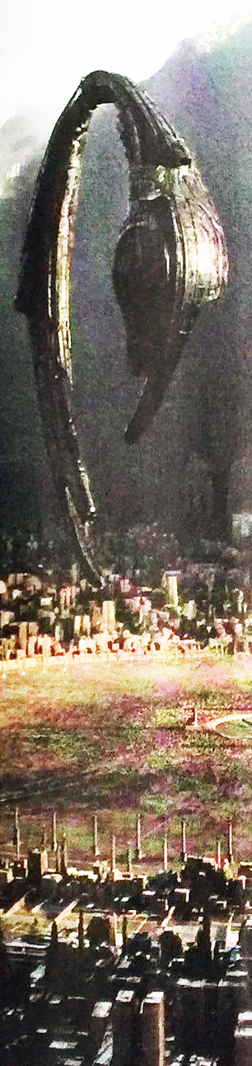 You are able to see the shadow underneath the huge craft on the bottom of the original pic on the buildings. I had most of the edge of the shadow cropped out where you were unable to see it.