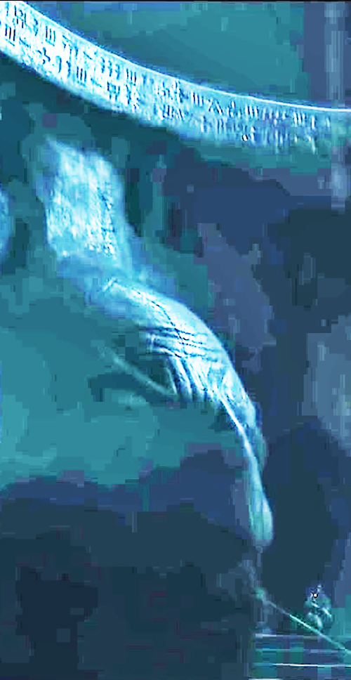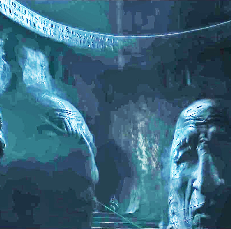 The Heads also appear to be about 15M Tall. And its looking like the opening is about 100M in Diameter which would be too small for the Hanger, and looking at the Empire Magazine shot of the Juggernaught with the Hanger opening it appears this Hanger is at least same size as the Juggernaught and so 300M in Diameter but the Prometheus Hangers where about 430-450M Mark.