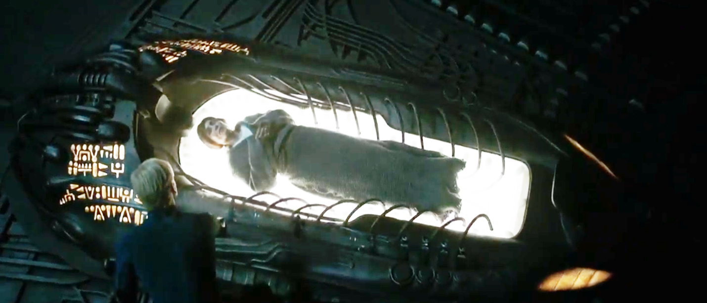 Interesting that Shaw is wearing her Prometheus space suit in all the shots, except when she's in the cryo chamber and when she's looking out of the "window"