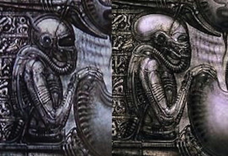 Nice enhancements on the Giger Engineer image Dark Nebula. Great shading. The interview details from 2004 are good too. Nice to read Giger explaining his intent associated with the drawings.