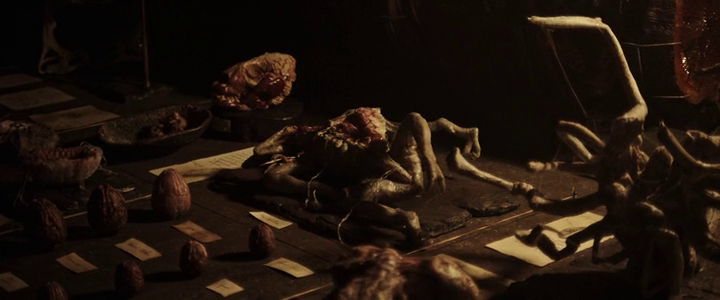 As for the facehugger embryos, I do believe that they were taken out of these small eggs. These small alien eggs can be seen on the table as well: