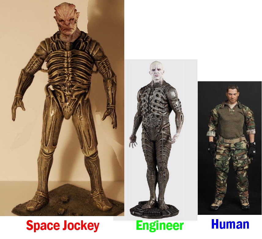 I think these are better designs than the Comics used in that link Critters5 posted, but i would like to see the Space Jockey revealed as some 12ft tall Bio-Mechanical being, much like the Engineers suits, but have the Helmet look more like the one in Alien and the Color a bit different for the whole Creature.