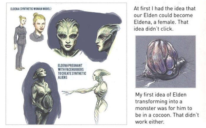 "As for the sketches with the classic egg, chestburster and xenomorph from David's lab, I believe they are the concepts he wishes to achieve"