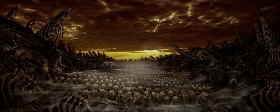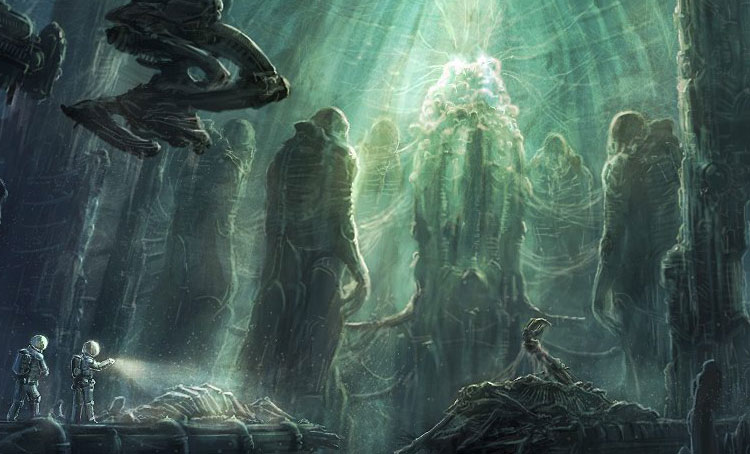 Story : Ancient Engineers created a large biological mass on LV-426...they feed it(sacifices) and in turn it gives them black goo...The large biomass is spread over tens of Kilometers. The biomass has dozens of ‘mouths’ in which the Engineers build temples.