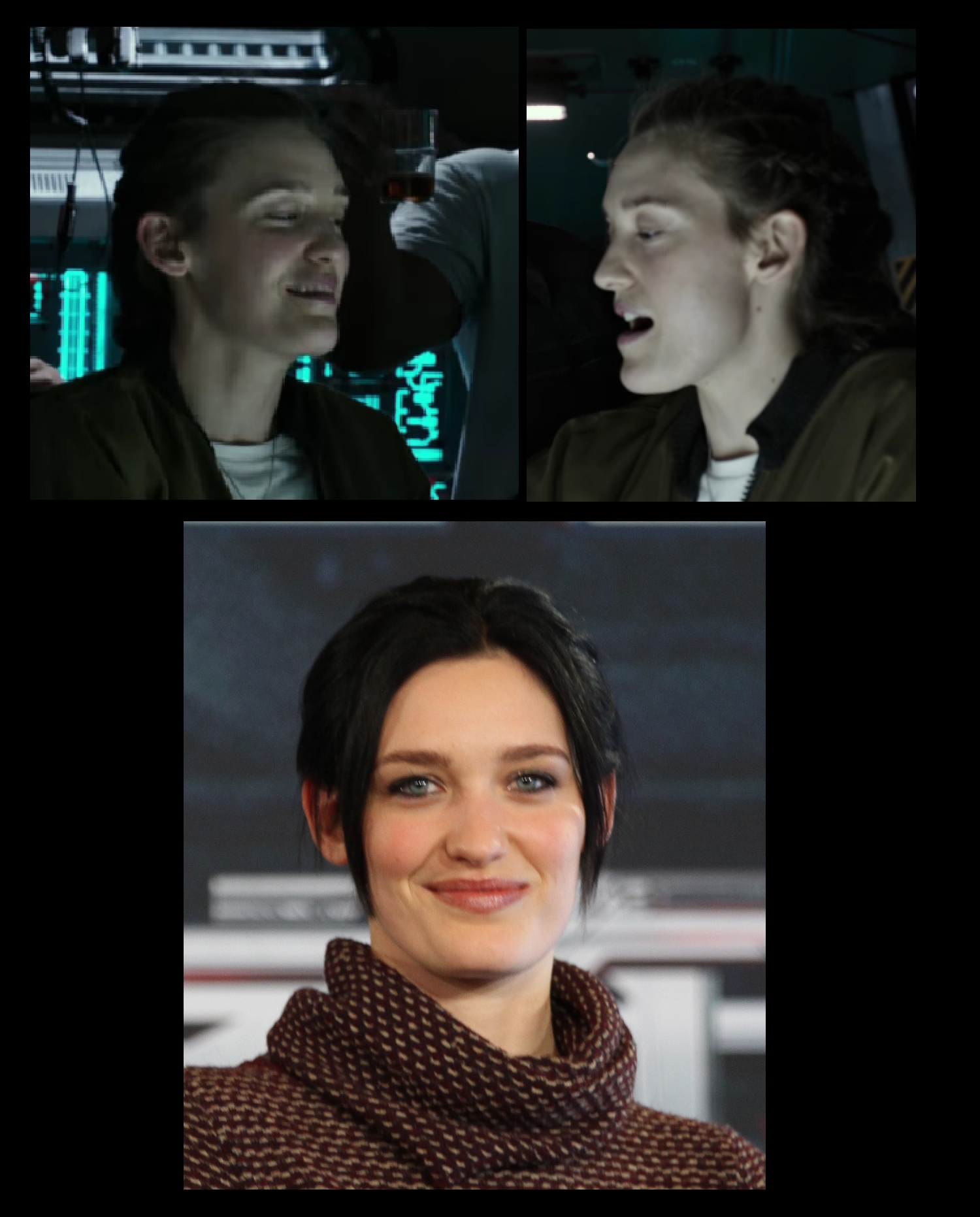 4) Tess Haubrich has a strong boneline and Jaw shes quite tall, Hell i even thought she was Crudup in the first Trailer as one of those coming down the Ramp but then coat was different to Crudup's in two latter shots.. so they was always a ???