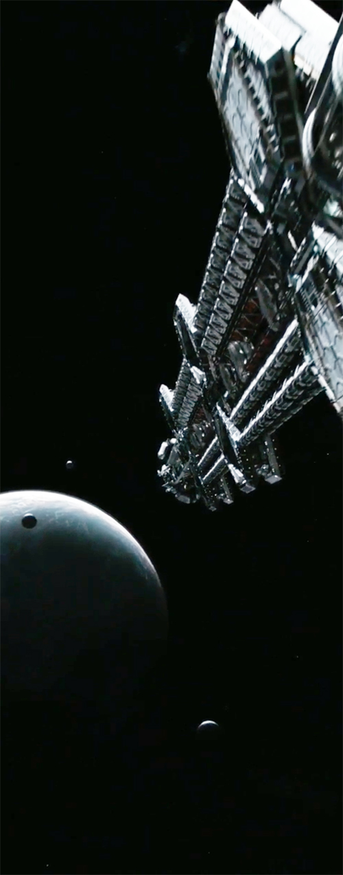 Here is a shot of the Covenant ship with three moons visible around a planet.
