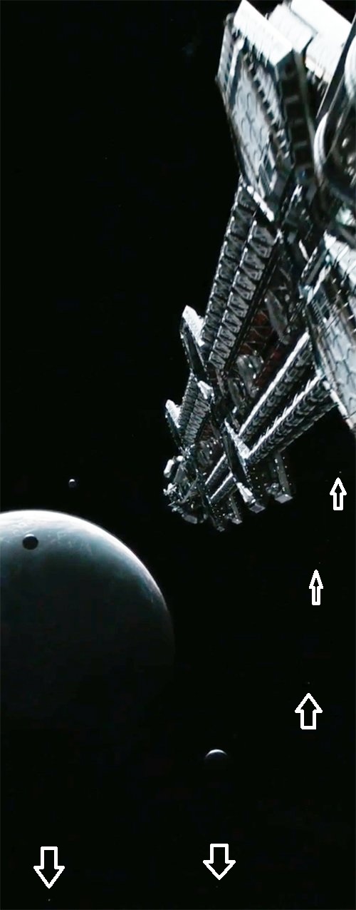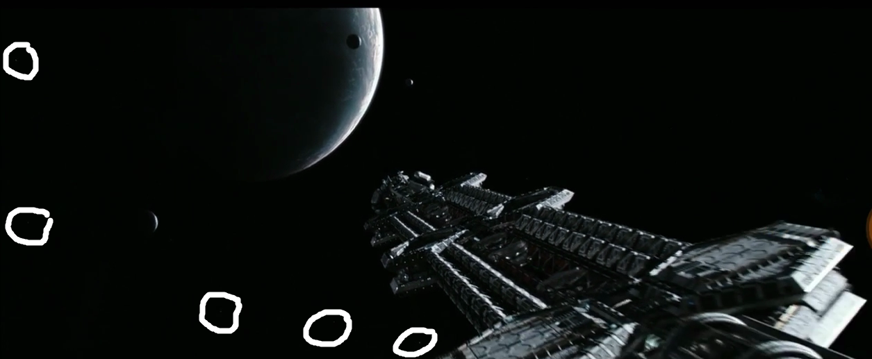 I think some of the Moons would also likely be behind the Planet in this shot and others off to the left off screen.
