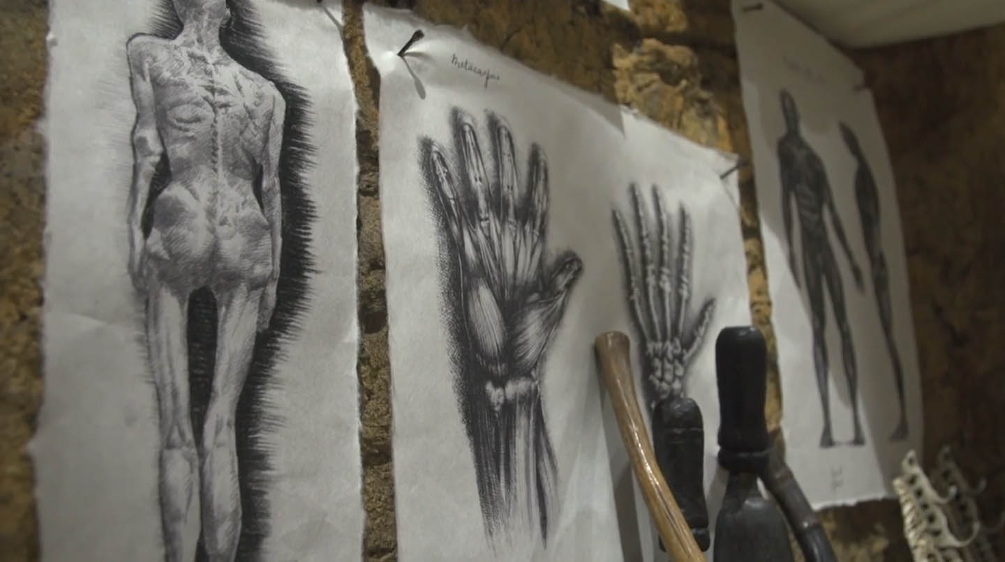 Do a google image search for Museo Della Specola in Florence Italy. Those anatomical wax sculptures were an inspiration for some of the specimen's and drawings in David's lab. According to Connor O'Sullivan of Creatures Inc, they were also an inspiration for the musculature and bone look of the proto-xenomorph.