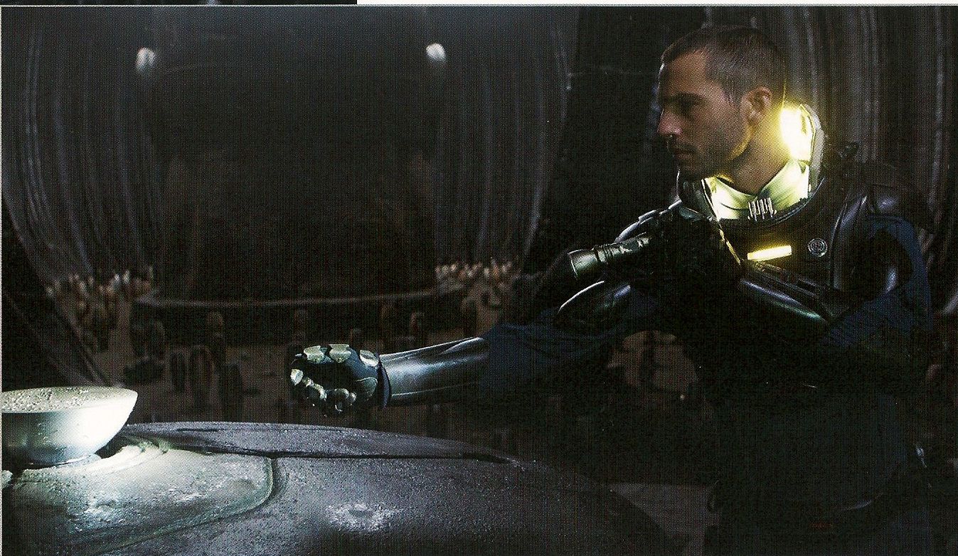 For Example the Sacrificial Bowl.... now in the Shot with Holloway his Object is Large, its is much larger to Holloway than it was to the Sacrificial Engineer... but its about the RIGHT SCALE if our Sacrificial Engineer was 12ft Tall. And with the drafts to Prometheus our Engineers were intended to be 12ft Tall but when the movie was shot, the Illusion could not be created with how Ridley Scott had shot the movie and so we could see our Engineers where not 12ft tall but 8ft Tops.... so this would be a good reason to replace the Bowl if its now out of Scale.... but then who is to say they could not have explained in a Sequel the Sacrificial Engineer was 12ft Tall, or what stopped them making a Smaller Bowl to Scale with a 8ft Engineer. So the Change is still interesting. We have to Ponder if there was another reason, more than just because the Bowl was set to the Scale of much Taller Engineers than we got.