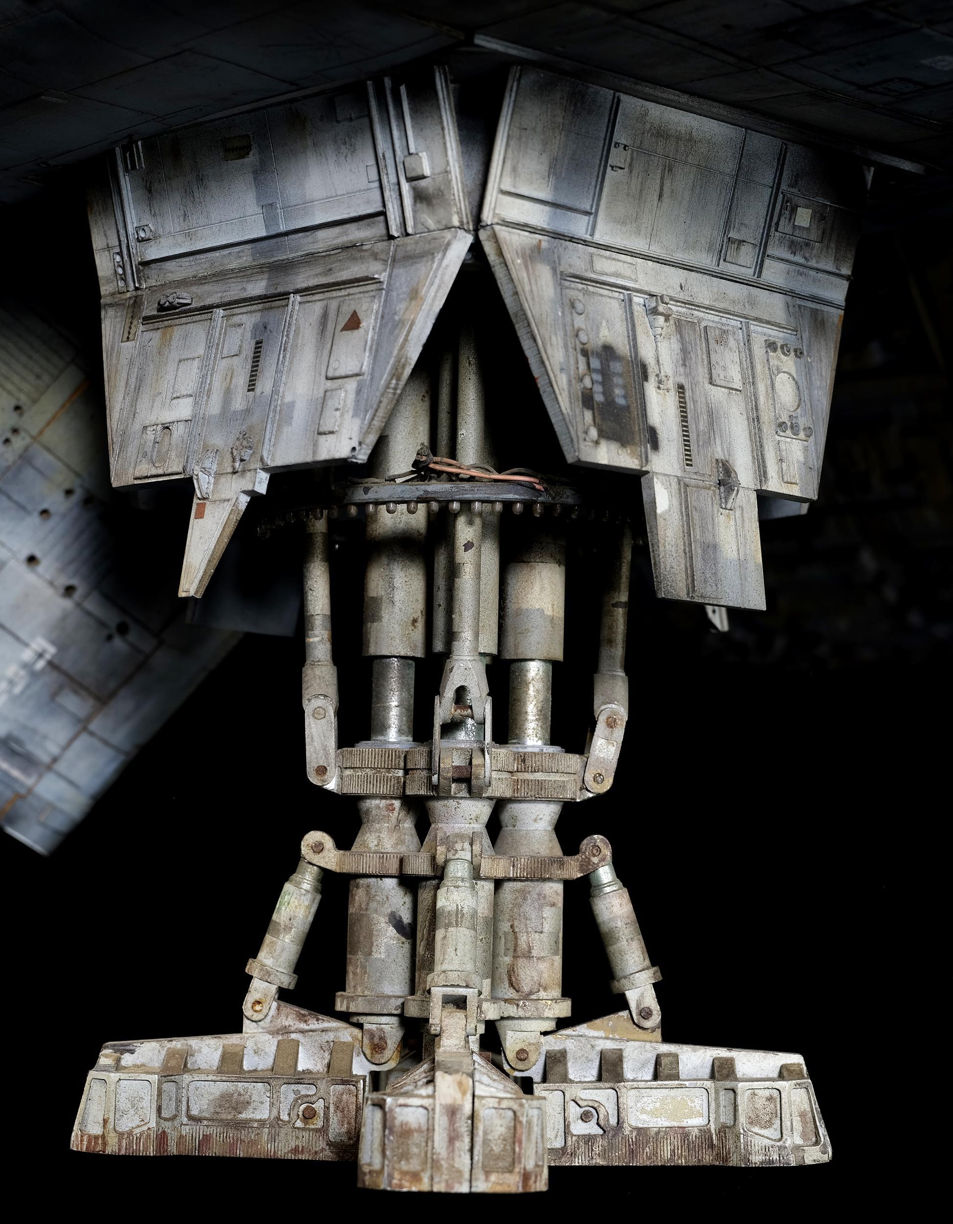 After filming, the model travelled to Los Angeles to be part of the film’s premiere promotions. It was subsequently stored outside under tarps for a number of years and its condition worsened from the elements. An extensive restoration of the model took was performed by effects house Grant McCune Design (modelmaker Grant McCune was best known for his work on Star Wars) around 2009, led by industry veterans Monty Shook and Jack Edjourian. The team worked from an extensive body of production photo reference to ensure the restoration was faithful to the original build. The intricate work involved straightening and stabilizing structural elements that had become dislodged or warped and recreating missing surface elements, including panels and model kit detail pieces. Dislocated pieces were fitted again, and a number of missing elements were recreated – notably two of the three landing gear, the underside component containing the three large lights at the front, two of the three engine interior detail clusters and various engine flaps, one of the intake vents, the side-panel structure mount cover plates, the front radar dish, and the antennae seen on the ship’s body. The recreated pieces were made by molding existing examples (such as the landing gear and engine details) wherever possible, for the most faithful recreations possible. The lighting system and CO2 system are largely removed from the model and are not functional, though it would be possible to retrofit a new lighting system if desired.
